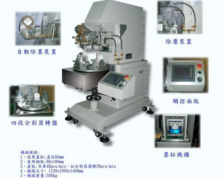 TM-P6S六色穿梭移印機Y油盅式四色直推移印機其主要特點及性能參數如下: