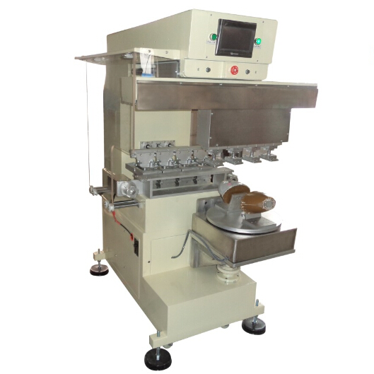 圖案的顏色數量好理解,一般產品上有幾種顏色,通常就要考慮運用多色移印機了。我們生產的移印機可以提供2-8色的印刷要求,可以選擇轉盤式和直推式兩種工作臺方式的移印機,在印刷上都可以做到套位精準,圖案文字印刷細膩。
